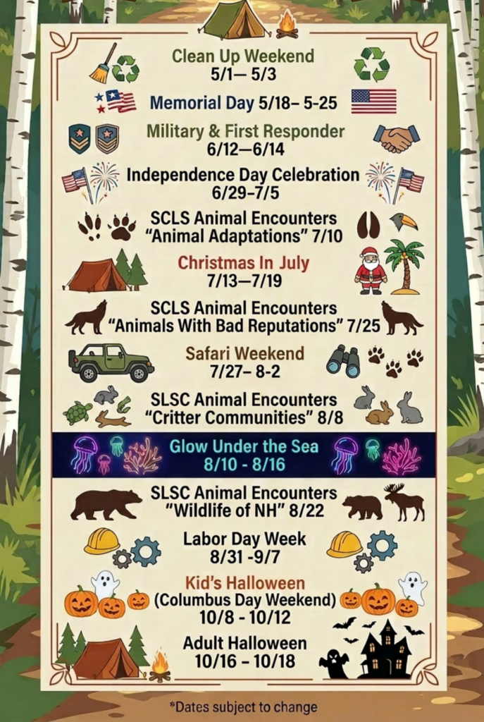 Rec HallCheck in at the Rec Hall to get your cleanup assignment, then head out to help spruce up our shared spaces. Whether you’re raking, tidying, or just lending a hand, every bit helps keep our campground looking beautiful for all to enjoy. Let’s make it shine together!